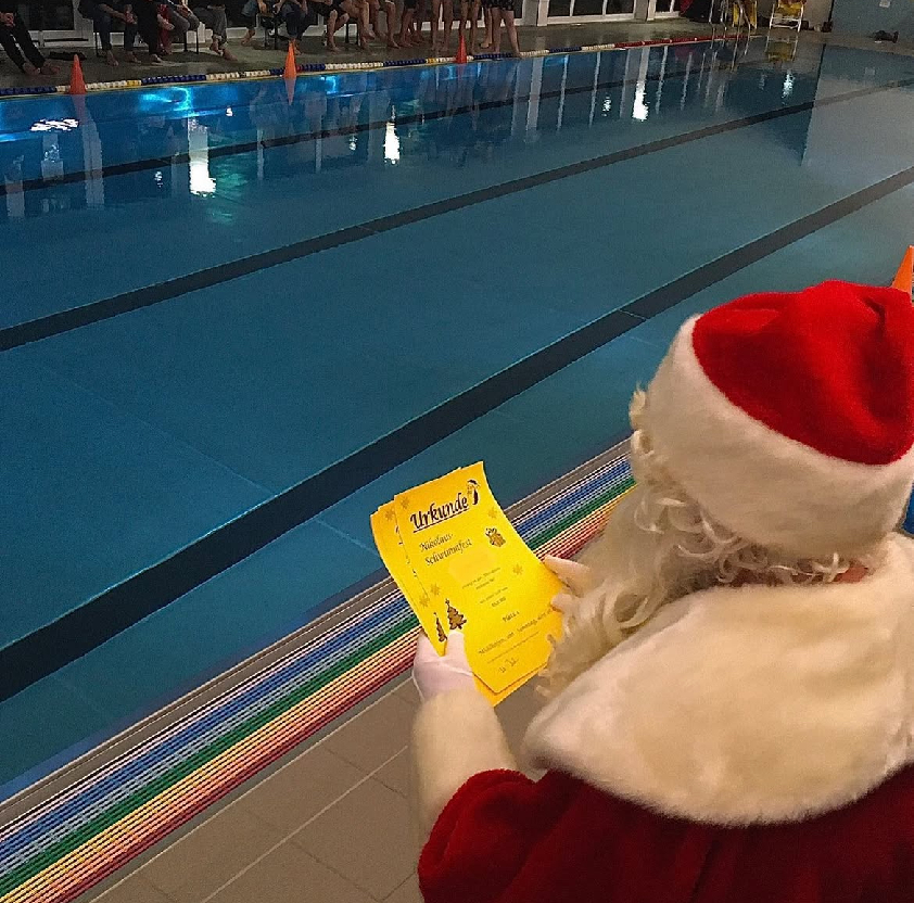 Geschwommen werden je nach Jahrgang 25 m oder 50 m Freistil, außerdem findet eine Familien- bzw. Teamstaffel (3 × 25 m) statt. Ein besonderer Höhepunkt ist der Kerzenreigen mit Nikolausbesuch und anschließender Siegerehrung gegen 20 Uhr. Über Spenden für das Kuchenbuffet freuen wir uns sehr!